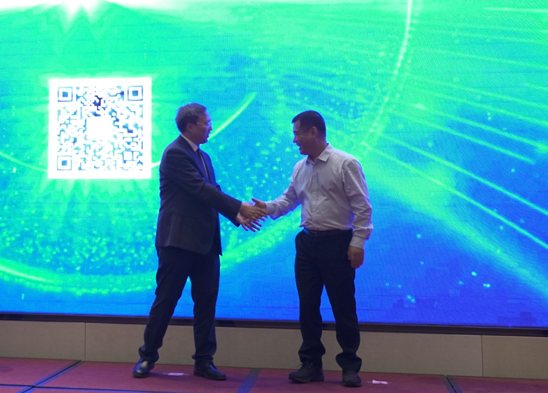 隨后,來自中國礦業大學環境與測繪學院黨委副書記韓福順及河南能源集團總調度中心高級經理侯振堂作為代表分別上臺發表了各自感想,并由主持人邀請重要嘉賓開啟當天會議的高潮——龍軟云GIS全球首發暨煤炭行業教學培訓版捐贈儀式。