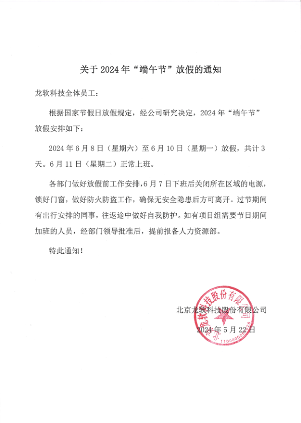 關于2024年“端午節”放假的通知